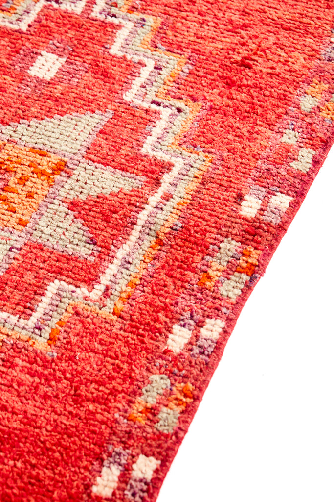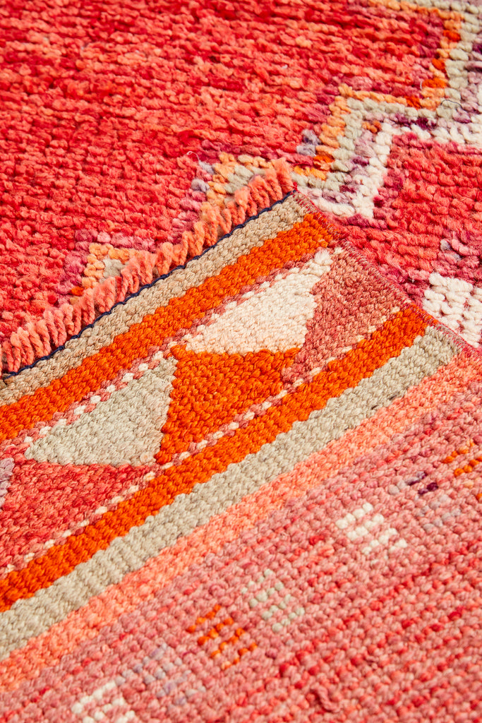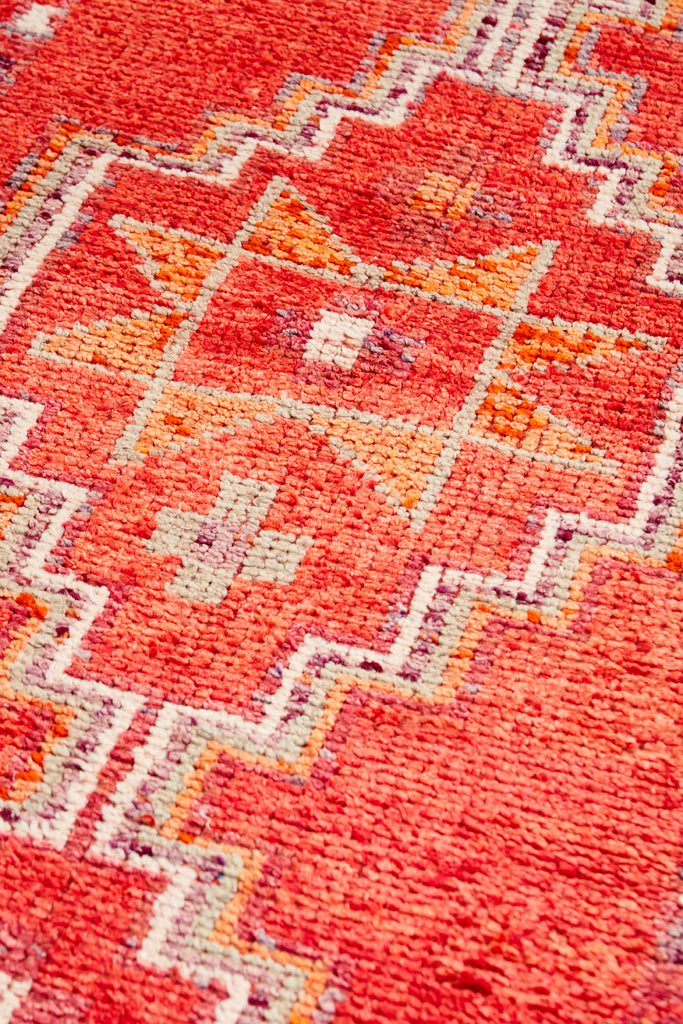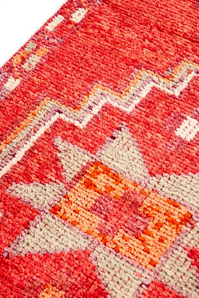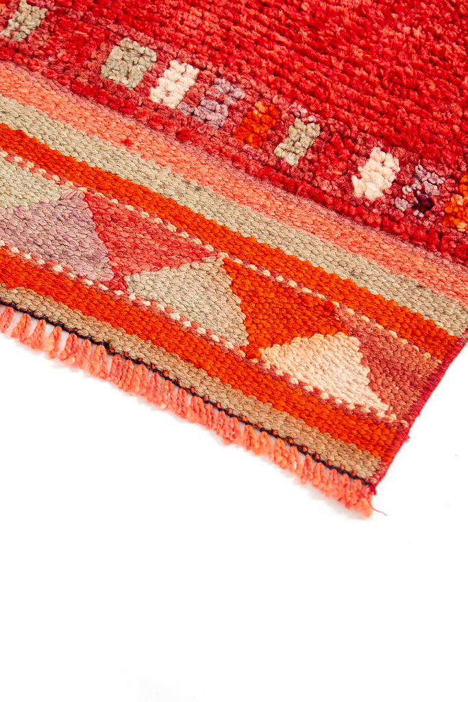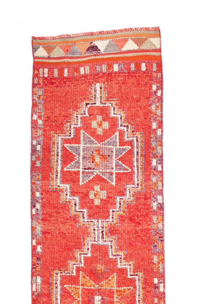 Diaco is a very striking vintage knotted pile runner which was  made in the mid 20th Century and is in original condition. This runner has a soft pile weave throughout the central area and have kilim weave at each end.