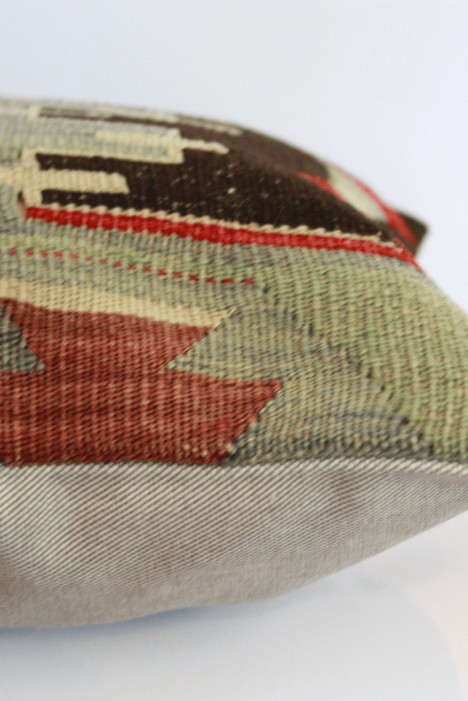 All of our kilim cushion covers are made from handwoven vintage kilim and rug fragments and no two are ever the same. They all have a durable cotton backing and high quality zipper.