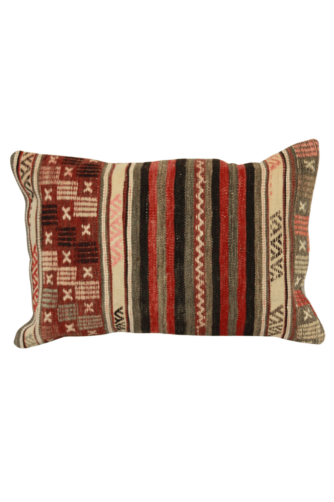 All of our kilim cushion covers are made from handwoven vintage kilim and rug fragments and no two are ever the same. They all have a durable cotton backing and high quality zipper.