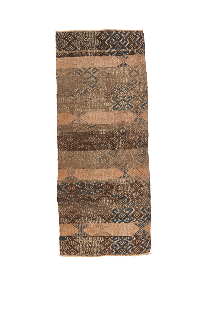 Hayati is a vintage village kilim runner. Woven in soft wool with warm shades of brown and blues.