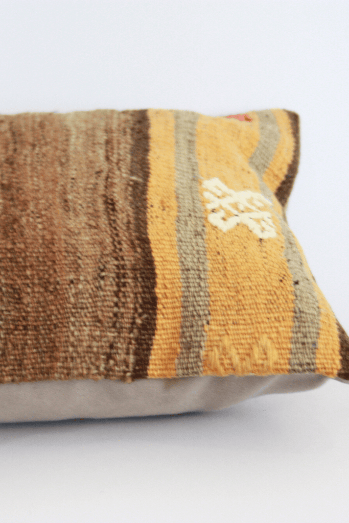 All of our kilim cushion covers are made from handwoven vintage kilim and rug fragments and no two are ever the same. They all have a durable cotton backing and high quality zipper.