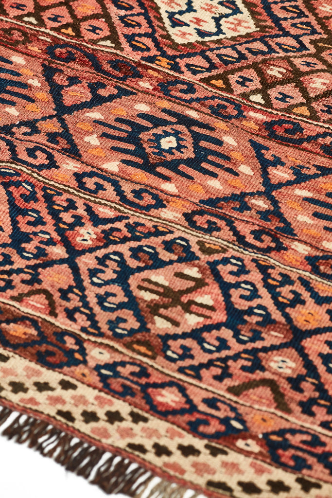 Navid is a Turkish Sarkoy kilim rug (also known as a Thracian kilim) which is a type of fine, flat-woven rug traditionally produced in the Thrace region of Western Turkey and the Balkans. They are highly regarded for their intricate designs and delicate craftmanship.