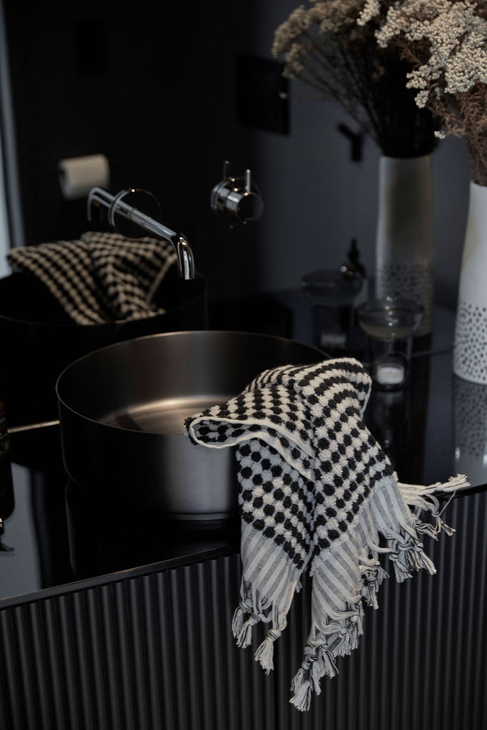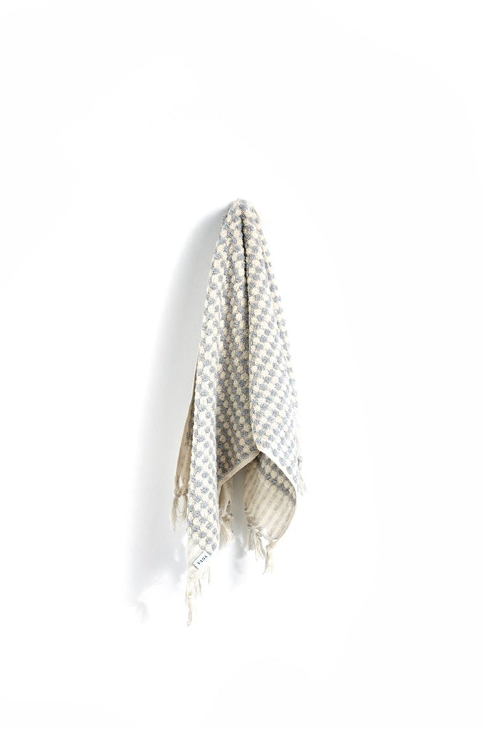 100% certified organic cotton Turkish Pompom Hand Towel. These are hand-knotted using traditional techniques that have been passed down through generations, the technique used to make these towels means they are highly absorbent and long lasting.