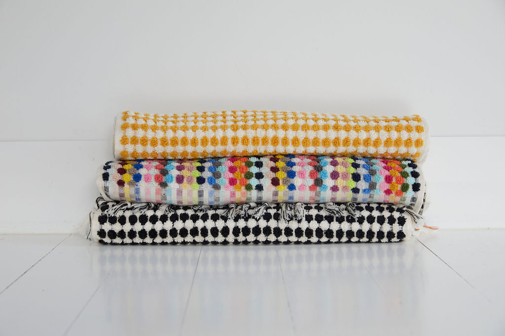 Available in five colours, they have been woven with funky, soft yarn that will add a pop of colour to your bathroom or kitchen. These are generously sized hand towels.