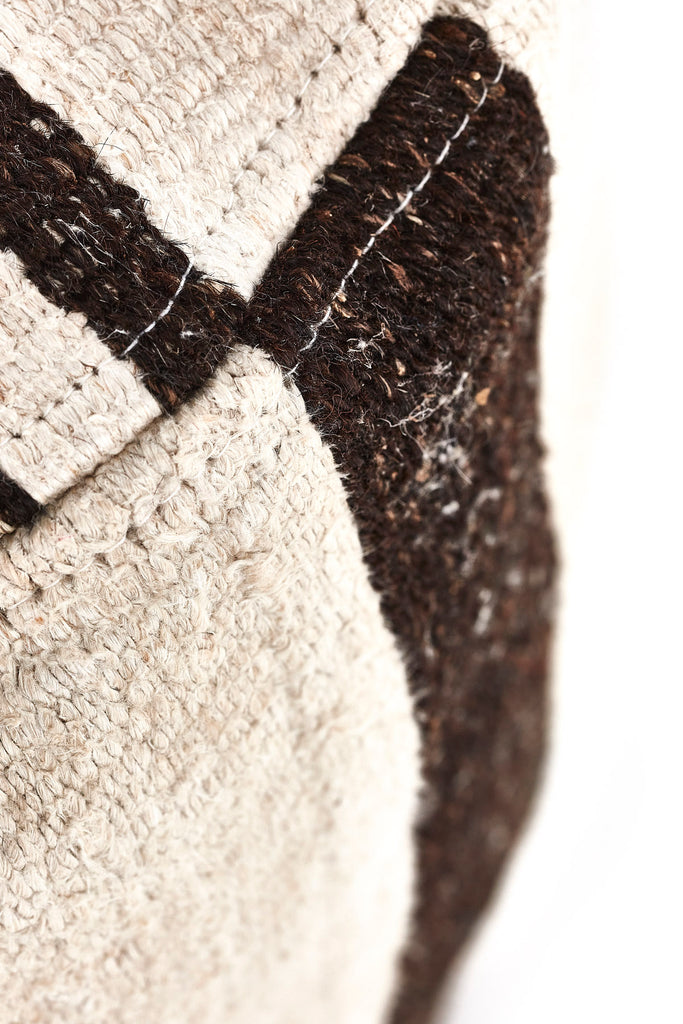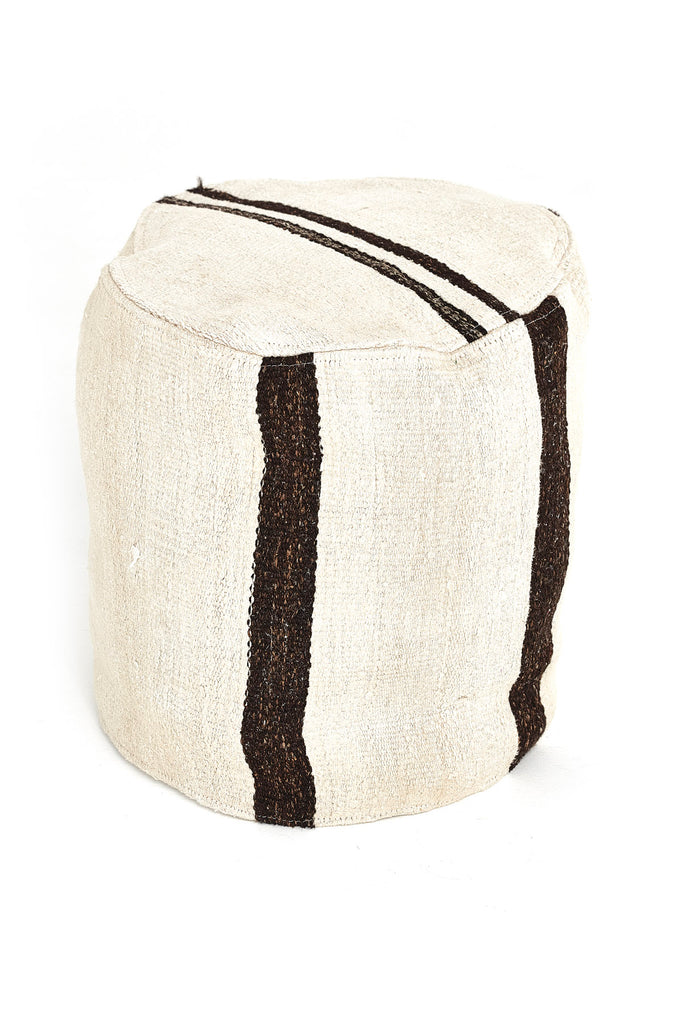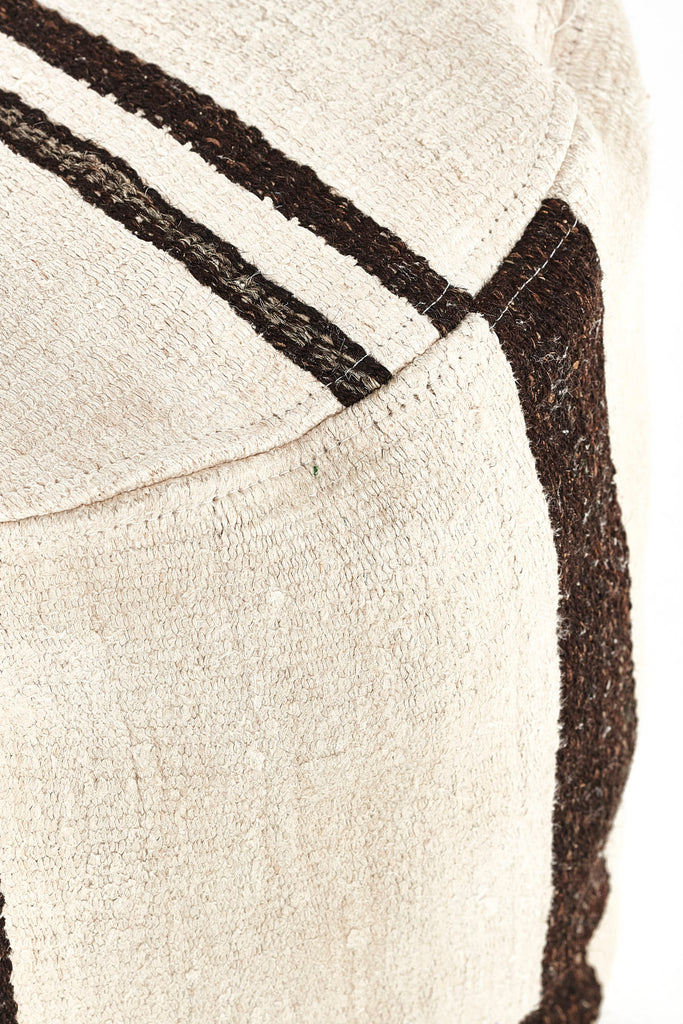 This pouf has been made from fragments of vintage hemp rugs from Turkey. It has a durable cotton backing and high quality zipper.