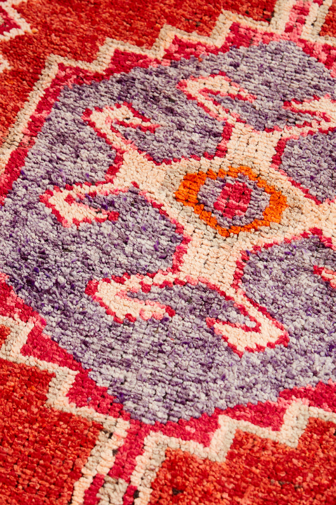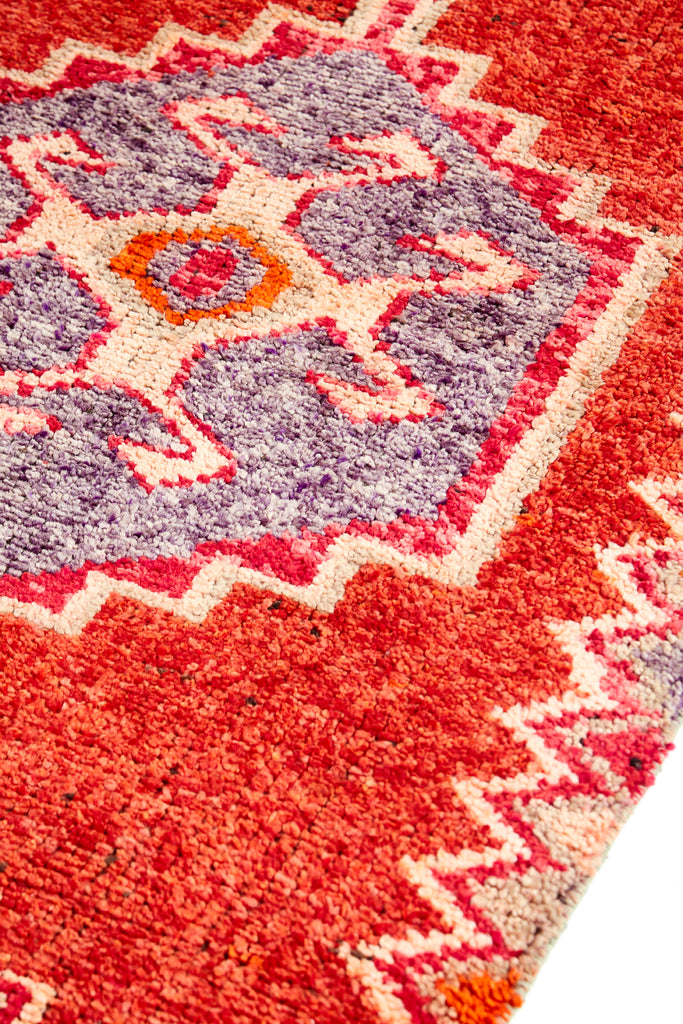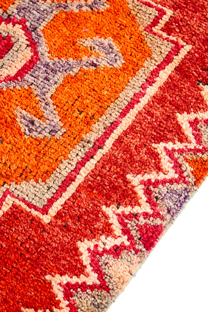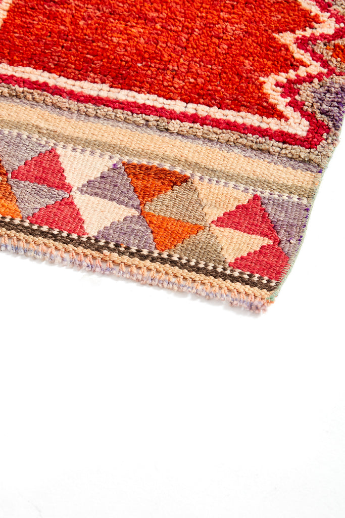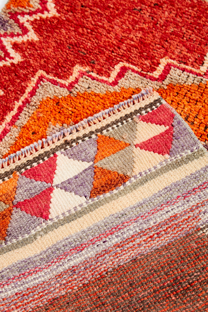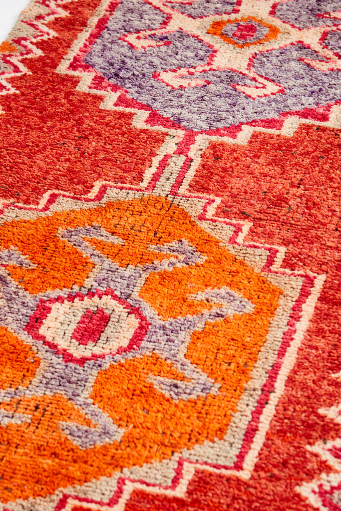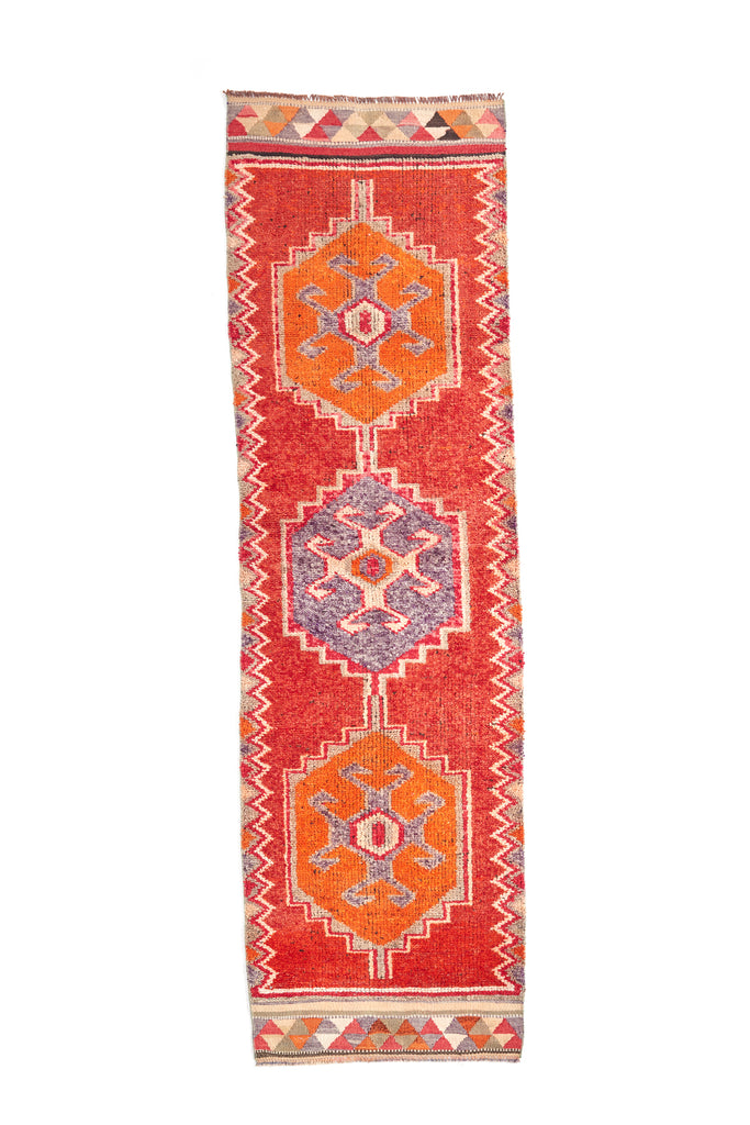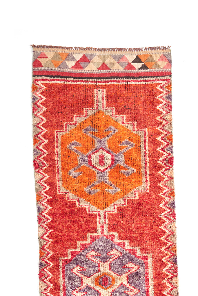 Alima is a very striking vintage knotted pile runner which will add colour & warmth to any hallway. Made in the mid 20th Century and is in original condition. This runner has a soft pile weave in the central area with flat Kilim weave at each end. A simple and bold runner that will look gorgeous in your home.