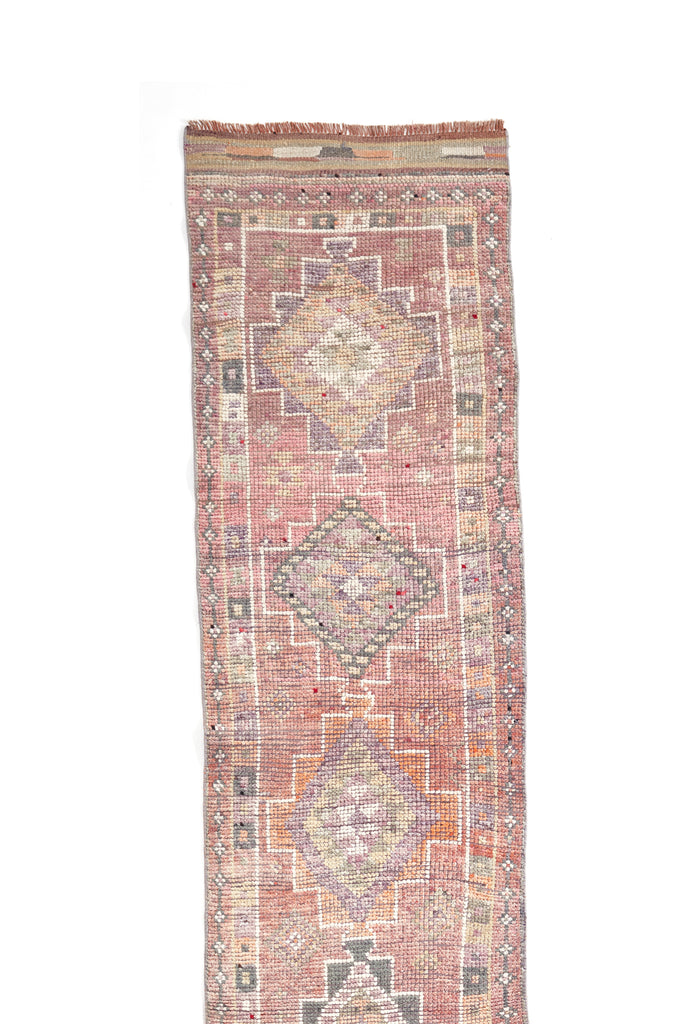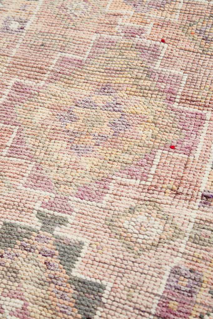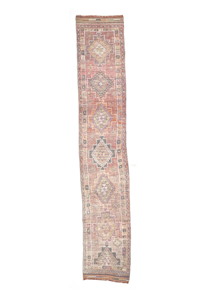 Asna is a very striking vintage knotted pile runner which was handwoven in the mid 20th Century. Beautiful soft colour combination and a great length of almost 4 metres.