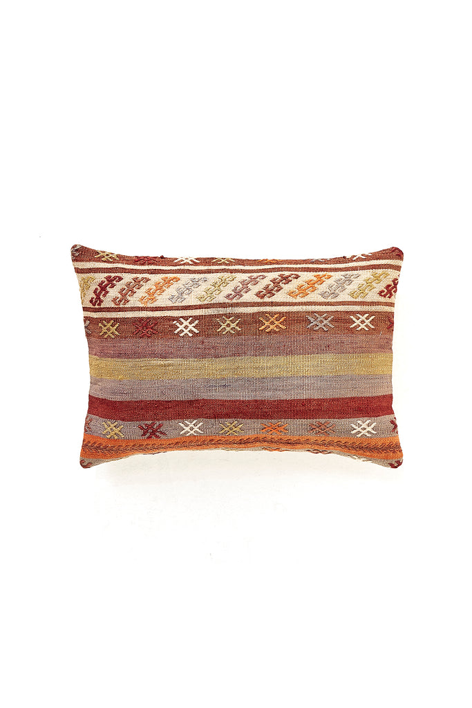 All of our kilim cushion covers are made from handwoven vintage kilim and rug fragments and no two are ever the same. They all have a durable cotton backing and high quality zipper.