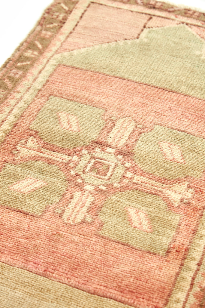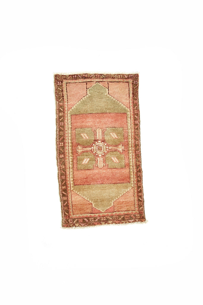 Mini vintage Turkish knotted pile rug from the city of Kars in North Eastern Turkey. These Mini Rugs are known as 'Yastiks' - small pillows that were used by nomads that have now been turned into tiny floor rugs in their second life.
