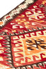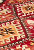 In excellent condition and from Adana which are some of our best selling kilims due to their beautiful tones woven from natural dyes. This Adana kilim is more unusual with stronger reds and dark charcoal contrast borders, but is no less beautiful. A really interesting piece that will make you smile for years to come.