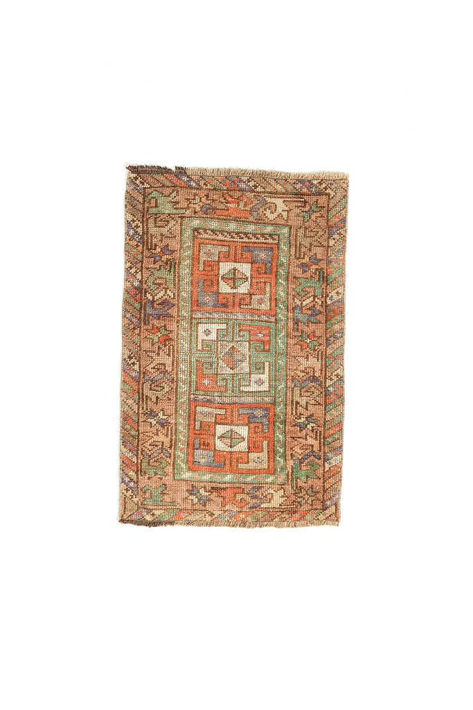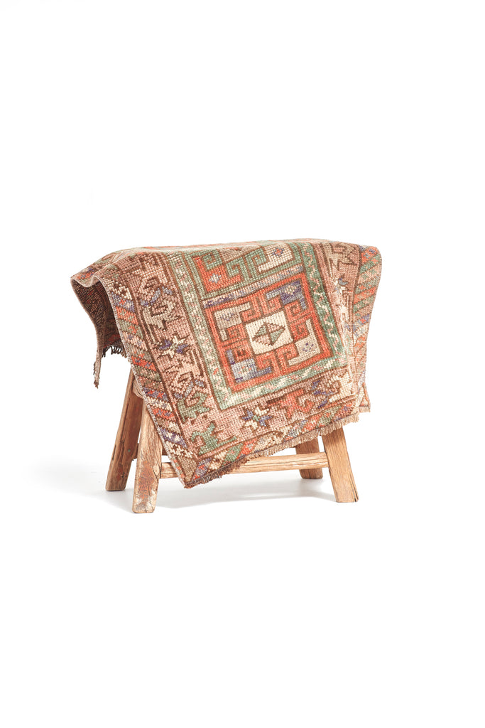 Tuba is a mini vintage Turkish knotted pile rug from the city of Kars in North Eastern Turkey. These Mini Rugs are known as 'Yastiks' - small pillows that were used by nomads that have now been turned into tiny floor rugs in their second life.