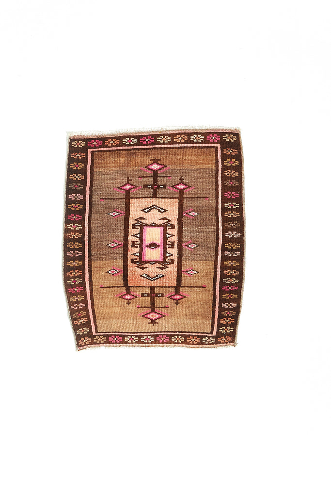 Idil is a mini vintage Turkish knotted pile rug from the city of Kars in North Eastern Turkey. These Mini Rugs are known as 'Yastiks' - small pillows that were used by nomads that have now been turned into tiny floor rugs in their second life.