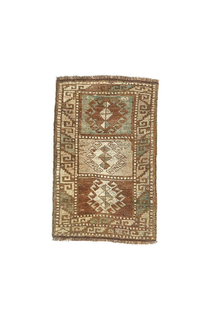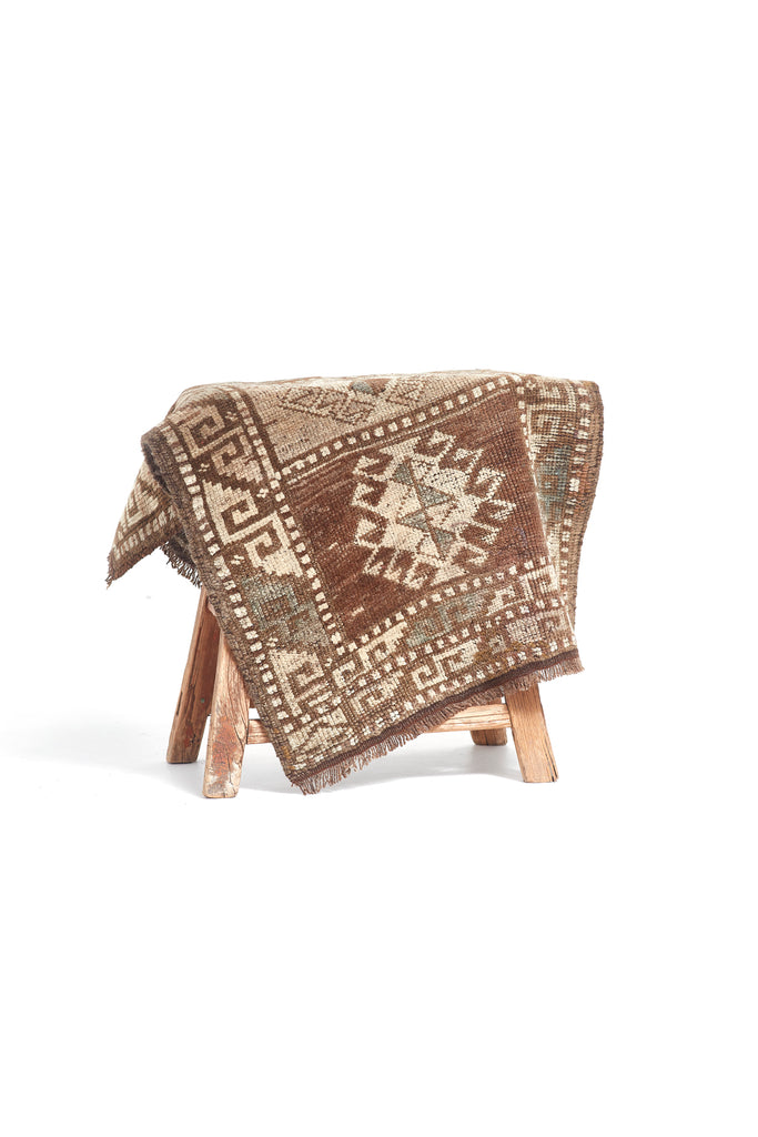 Kader is a mini vintage Turkish knotted pile rug from the city of Kars in North Eastern Turkey. These Mini Rugs are known as 'Yastiks' - small pillows that were used by nomads that have now been turned into tiny floor rugs in their second life.