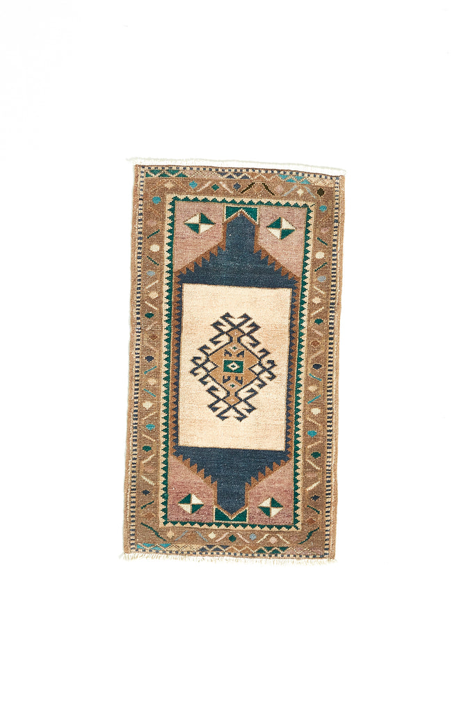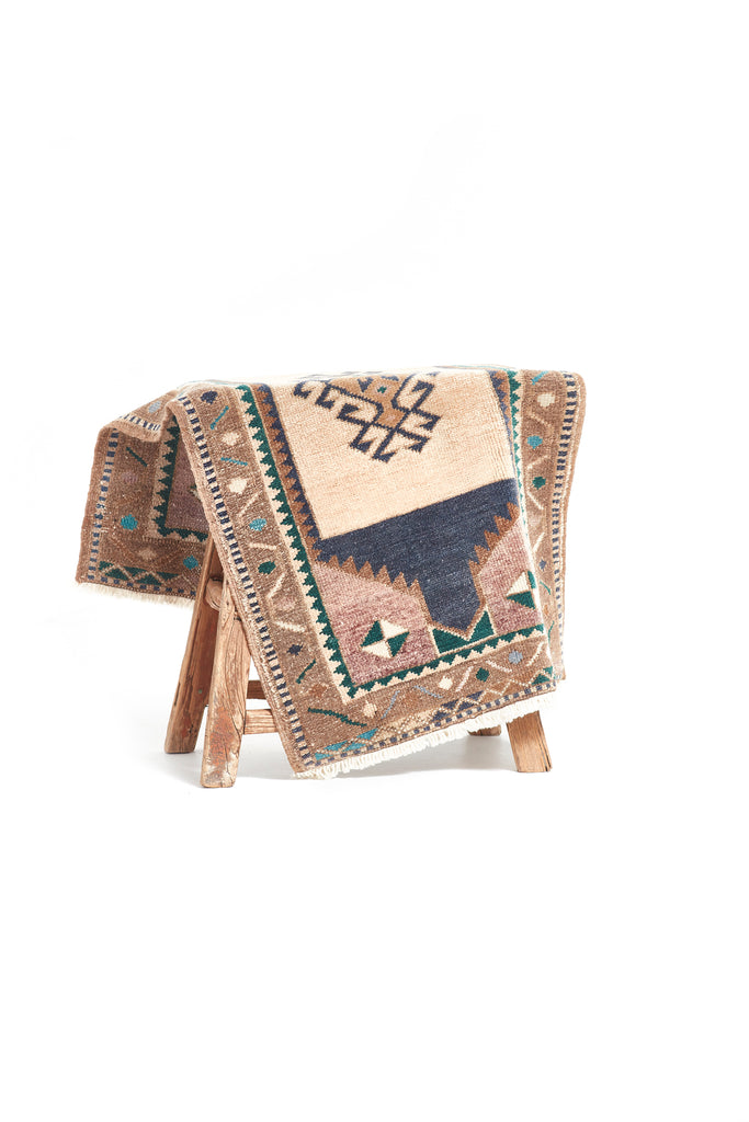 Serap is a mini vintage Turkish knotted pile rug from the city of Kars in North Eastern Turkey. These Mini Rugs are known as 'Yastiks' - small pillows that were used by nomads that have now been turned into tiny floor rugs in their second life.